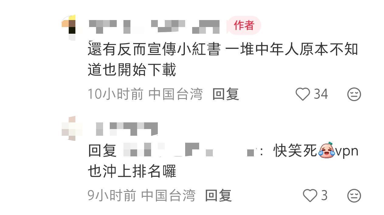 许多台湾网友还在小红书发帖称,家中的长辈之前不太了解小红书,最近也下载了小红书APP,台当局的封禁反而宣传了小红书。