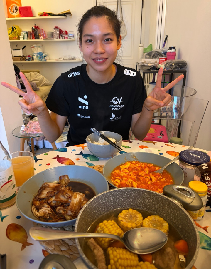 对于我们这些国手来说,去意大利联赛会打的相对轻松,像朱婷的球队需要参加欧冠、联赛和杯赛等,所以有时候一周会双赛甚至三赛,但是球队一定会给足她休息的时间。而庄宇珊的球队只是专注联赛,所以一周就打一场比赛,因此朱婷和庄宇珊其实还是有很多私下时间去安排,本身没有比赛的时候她们训练的时长也不会很多。北京时间的2月5日,庄宇珊为队友再次秀起了厨艺,一身服务员的服装打扮,倒让她看起来非常的专业,和队友也能够正常的沟通。