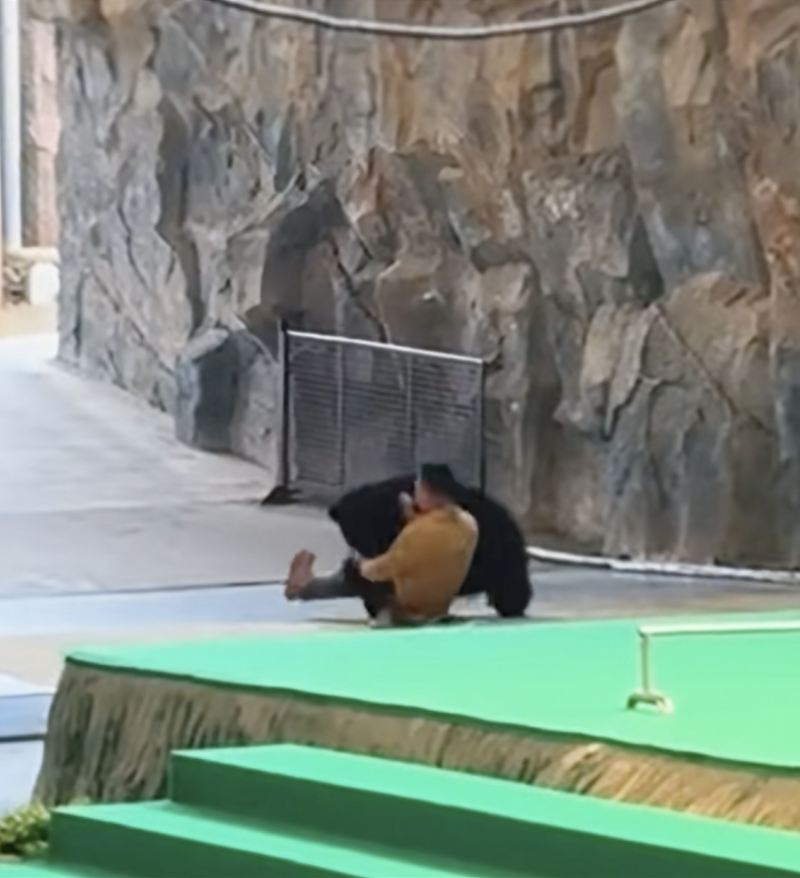 视频画面显示,在杭州野生动物园内,一只黑熊在结束表演后突然袭击驯养员,驯养员和黑熊扭打在一起,另一位动物驯养员见状后上前制止,视频发出后引发广泛关注。